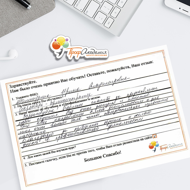 На курсах администратора понравился профессионализм, качество, четкость, тактичность .