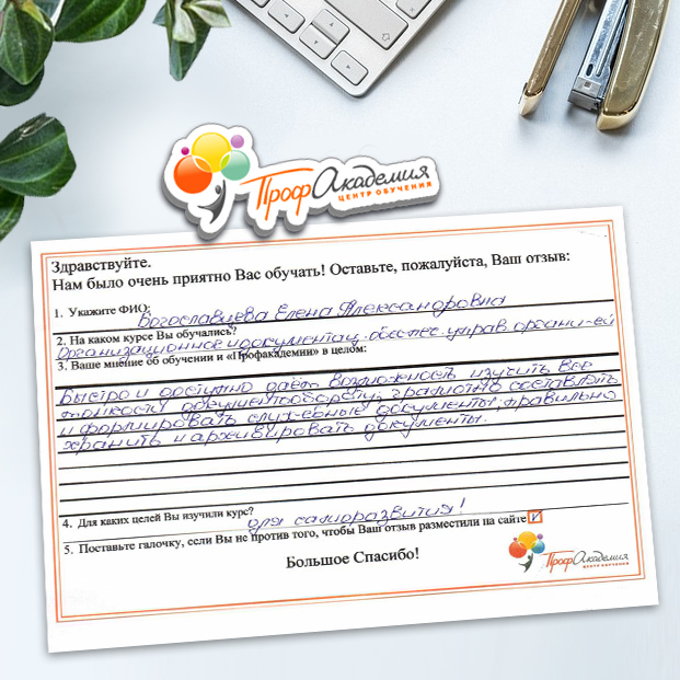 Быстро и доступно дает возможность изучить все тонкости документооборота; грамотно составлять и формировать служебные документы; правильно хранить и архивировать документы.