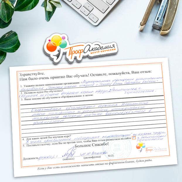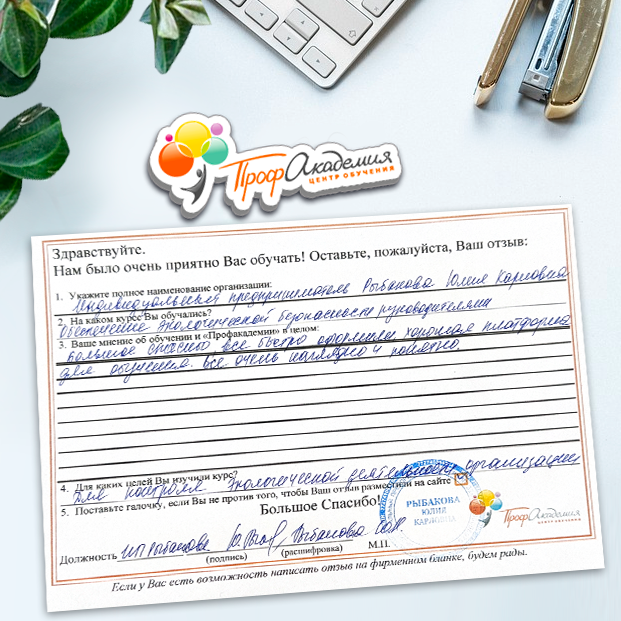 Профакадемия предлагает удобный формат обучения - дистанционный. Все доступно и понятно для разных категорий специалистов нашей компании в сфере обращения с отходами. Обращались не в первый раз и надеемся на дальнейшее сотрудничество.