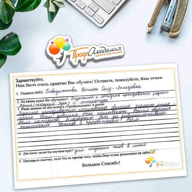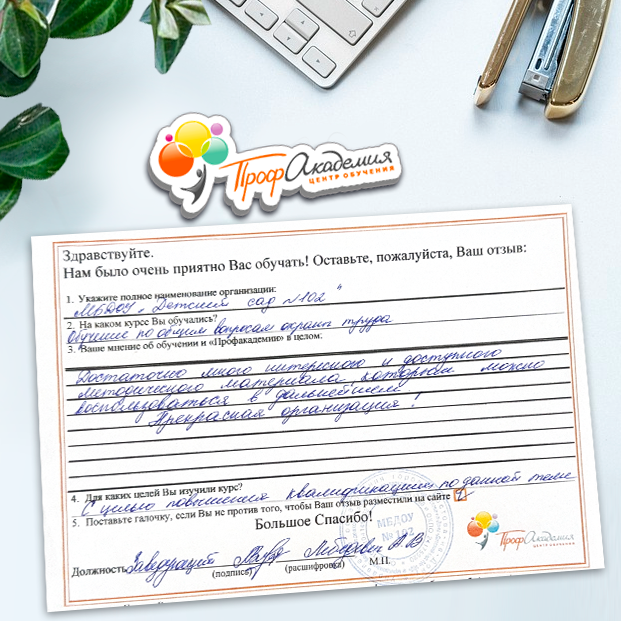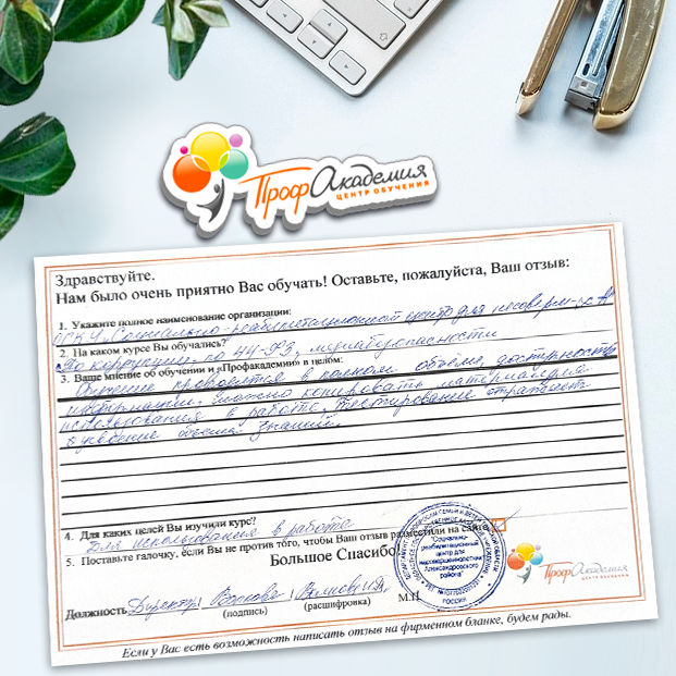 Неоднократно обучаемся в Вашем ООО "Профакадемия". Очень доступные программы, понятные и полнообъемные учебно-методические материалы. В дальнейшем при необходимости обучения, будем обращаться в вашу организацию.